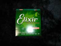 A張り替えようと思っているベースに合う弦太さ(ゲージ)や長さ(スケール)がありますので、自分のベースに合うものを選んでください。値段も安い奴なら1SET(4弦)680円ぐらいからあります。写真はゴアテック社のエリクサー。買うと7000円ぐらいするようです。 |